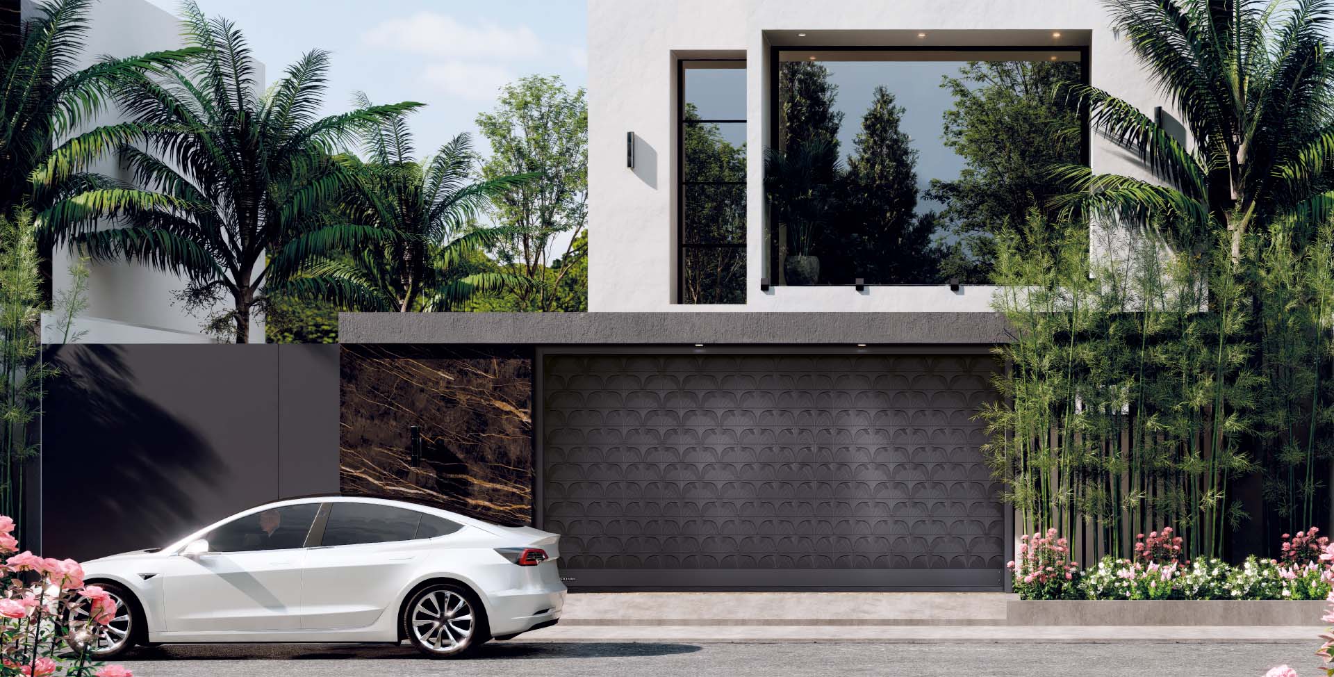 该图片为非量产车库门,实物请以最终交付为准。